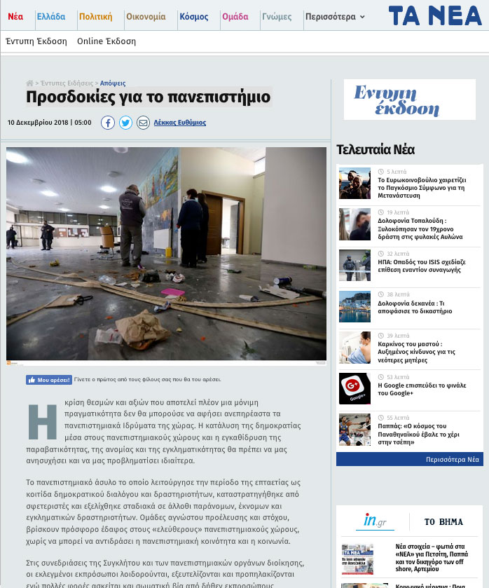 Έντυπη Έκδοση: Προσδοκίες για το πανεπιστήμιο
